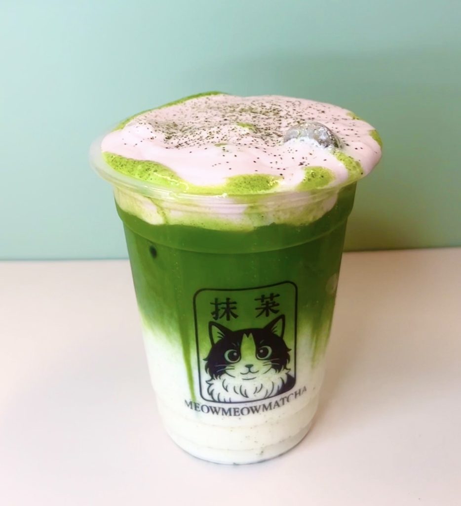 Meow Meow Matcha offers premium Japanese-inspired matcha drinks and desserts, including hand-whisked matcha lattes, specialty flavours, and signature treats like matcha tiramisu, all crafted with authentic ceremonial-grade matcha.