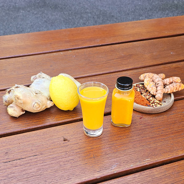 Power up with fresh ginger shots from Fredericks, made right here at Queen Vic Market – small but mighty!